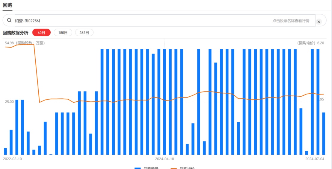 其实,和誉一直以来都在通过回购提升股东回报,早在此前的2023年财报业绩会上,和誉管理层便宣布了1亿港元的注销式回购计划,并于后续按计划进行回购。据智通财经APP统计,截至今年7月4日,和誉累计回购数量达到1927.1万股,累计回购金额5857.61万港元。