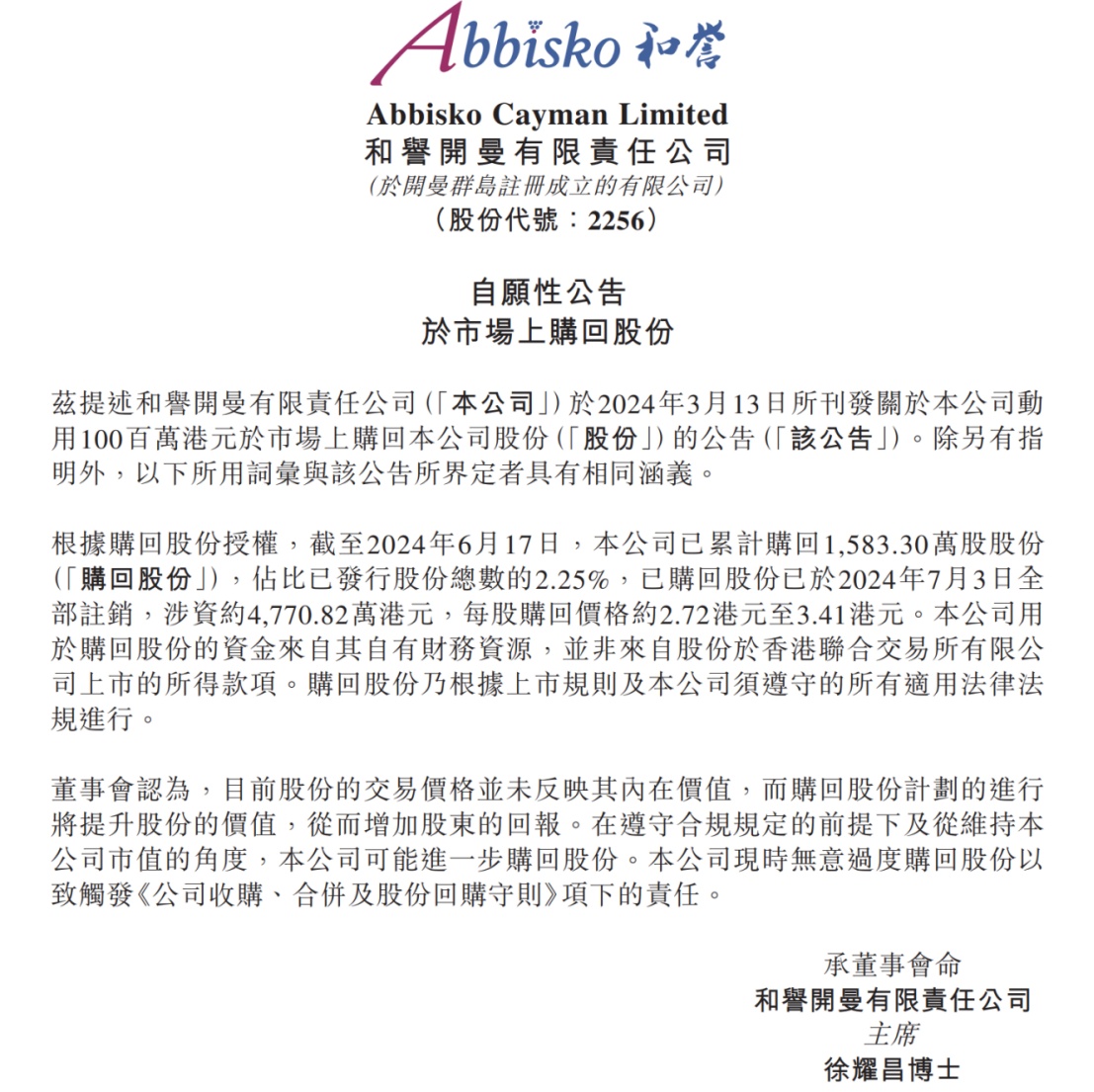 此次和誉宣布回购股票注销,正是其务实履行1亿港元注销回购计划,以“真金白银”回馈股东的重要操作。