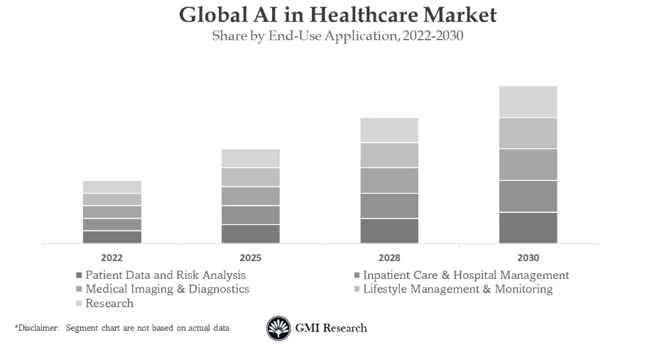 GMI Research最新研究报告显示,2022年融合AI技术的医疗保健市场价值仅仅约为104亿美元,预计2030年有望达到1899亿美元,在此期间的年复合增速(CAGR)高达43.7%。GMI Research表示,在分析极其复发的医疗数据时,AI往往能够以更短的时间和更低的成本执行任务,从而大幅优化患者、医生和医院管理人员之间的联系;并且该机构预计AI有望全面应用于医学成像与快速诊断、药物发现、医疗手术辅助机器人、基因级别的精准医疗、药物模拟筛选以及蛋白质结构预测等领域,大幅缩减产品创新周期、全面提高现代医学的精准率以及在同样的时间内覆盖更大范围的患者。