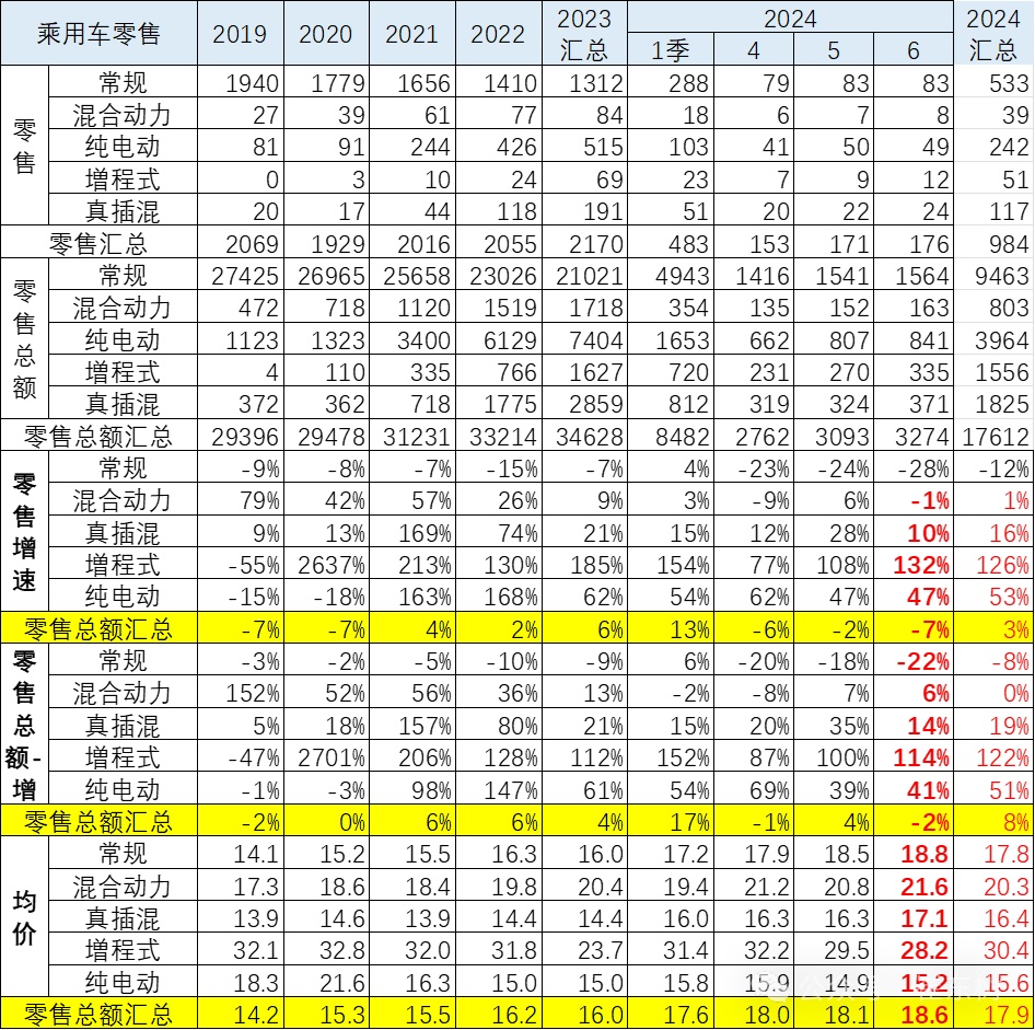 近几年的车市价格呈现持续上升的态势,2019年是14.2万元,2020年是15.3万,今年累计平均是17.9万元,6月是18.6万。主要原因是混合动力和增程式的价格较高,形成结构性拉动,同时原有的燃油车也是出现平均销售价格上涨情况,而且燃油车的高端化带动价格上涨较大。