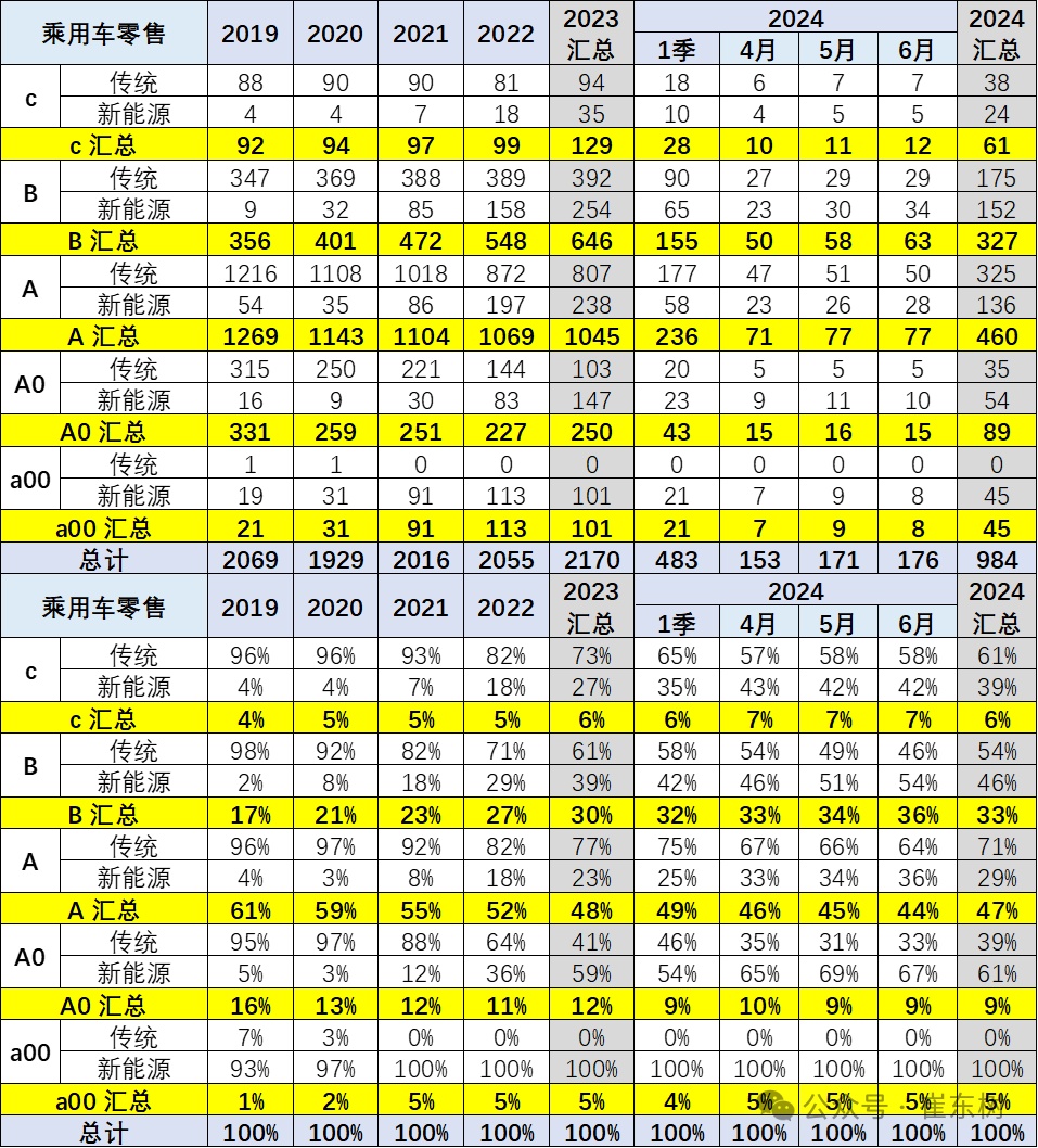 B级车和C级车的新能源渗透率大幅提升,体现高端电动化的优势明显。