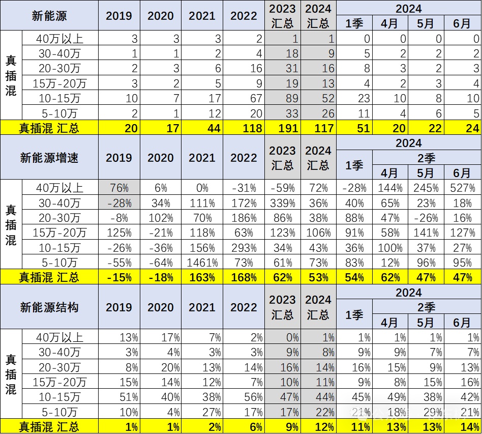 插混车型的增量主要在低价区间,自主的插混技术成熟后,已经在中低价的市场获得较大份额。
