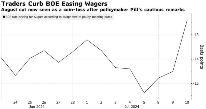 英国央行6月份表示,目前预计第二季度经济将增长0.5%,同时它也暗示,更多的利率制定者接近于支持从16年来的最高利率下调。市场目前认为,英国央行在8月会议降息的可能性略低于50%。