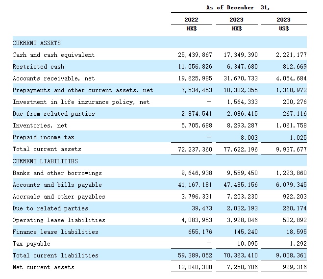 目前来看,星辉印刷对资金的需求非常迫切,截至2023年底,公司贸易应付账款和账单、其他应付款项加上银行及其他借款部分高达6424.7万元,占流动负债比例约为91.3。然而,公司现金及现金等价物却呈现收缩状态,期内分别约为2544.0万元及1734.9万元,同比下滑31.8%。这样的现金储备,让星辉印刷的抗风险能力非常脆弱。