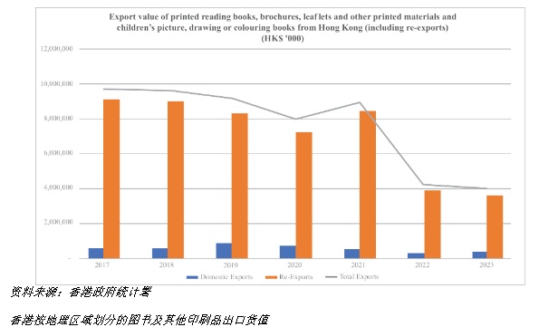 根据香港政府统计处的资料,近几年,香港印刷行业表现并不算好。2019年及2020年,由于全球经济低迷、香港社会动荡及COVID-19疫情的影响,出口额分别下降至约91.68亿港元及79.87亿港元。2021年,在全球经济反弹和货流改善的带动下,出口货值大幅回升,出口额增至约89.75亿港元,较2020年上升12.4%。然而,这种复苏是短暂的,因为出口额在2022年和2023年再次下降,分别下降至约42.24亿港元和40.39亿港元,显示该行业的出口环境持续充满挑战。