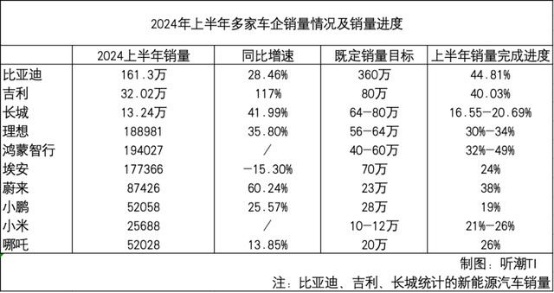 据听潮TI统计,当前大多数国内主流新能源汽车品牌距离完成全年销量目标还有不小距离,下半年车企仍面临不小的销售压力。