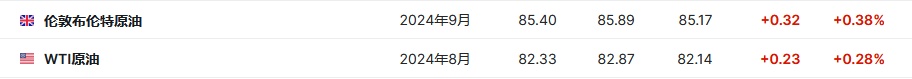3.截至发稿,WTI原油涨0.28%,报82.33美元/桶。布伦特原油涨0.38%,报85.40美元/桶。
