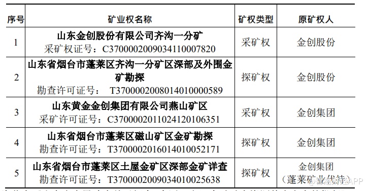 上述蓬莱矿业2次收购的资产中包括如下5宗矿权: