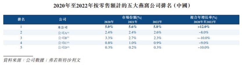 数据显示,我国燕窝于2022年市场规模为430亿元,近五年复合增速高达30.1%。但行业较为分散,有过万名参与者。于2022年,中国燕窝市场的市场规模占全球燕窝市场的70.0%。按2022年零售额计算,虽然燕之屋的市场份额排名第一,占有5.8%的市场份额,但实际上其与行业老二、老三2.6%、2.3%的市场份额差距并不大。在这样的背景下,燕之窝所面临的竞争压力还是不容小觑的。
