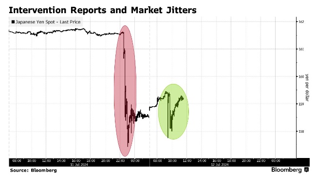 在此之前,在美国公布弱于预期的通胀数据后,日元兑美元汇率在周四的几分钟内飙升了4点,至1美元兑157.44日元。这一走势伴随着成交量的飙升,令人想起日本当局过去的干预。