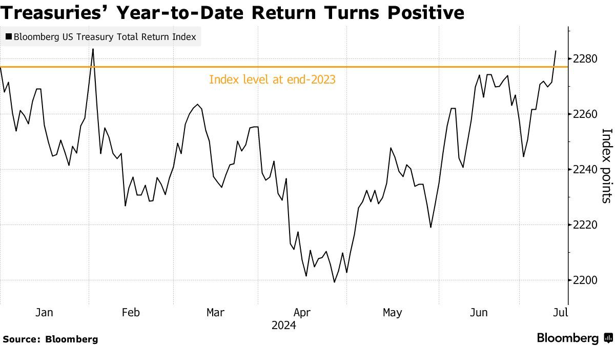 智通财经APP获悉,随着通胀降温促使交易员加大对美联储降息的押注,美债已经抹去了今年以来的所有跌幅。数据显示,Bloomberg美债指数目前累计上涨了0.25%;而在4月降息押注降温的时候,该指数的累计跌幅达到了3.4%。