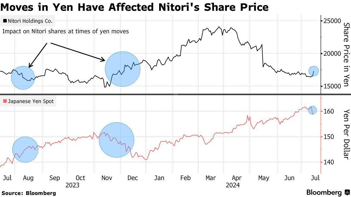 数据显示,Nitori周五上涨5.6%,创2月以来的最高涨幅。由于日元走软侵蚀了该公司的盈利能力,在日股大盘创新高之际,该股在截至周四收盘的年内已累计下跌12%。Nitori今年早些时候的一份业绩报告显示,汇率变动影响了其采购成本和库存,并影响了380亿日元(约合2.39亿美元)的普通利润。