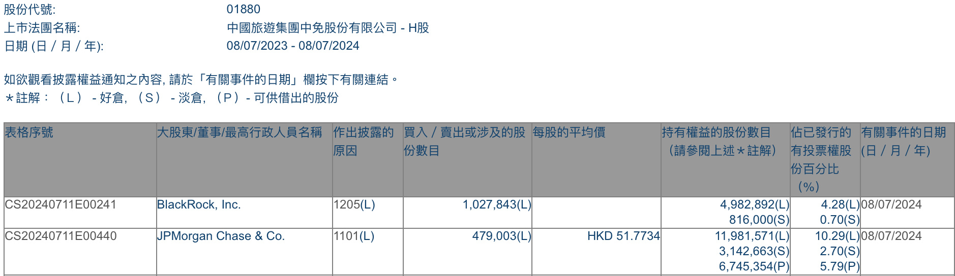 智通财经APP获悉,香港联交所最新资料显示,7月8日,小摩增持中国中免(01880)47.9003万股,每股作价51.7734港元,总金额约2479.96万港元。增持后最新持股数目约1198.16万股,最新持股比例为10.29%。