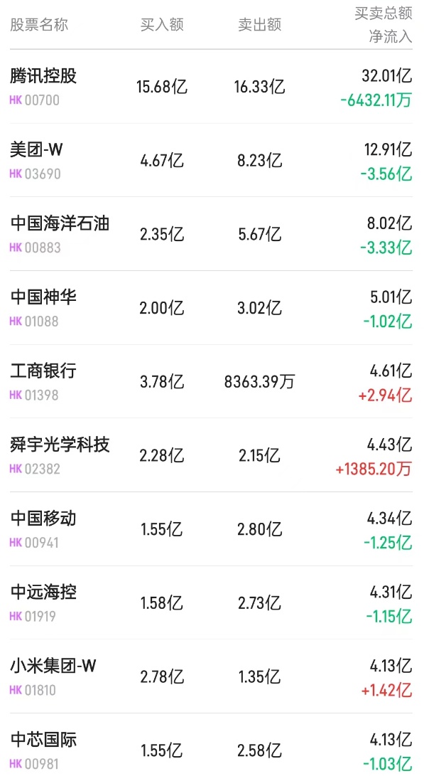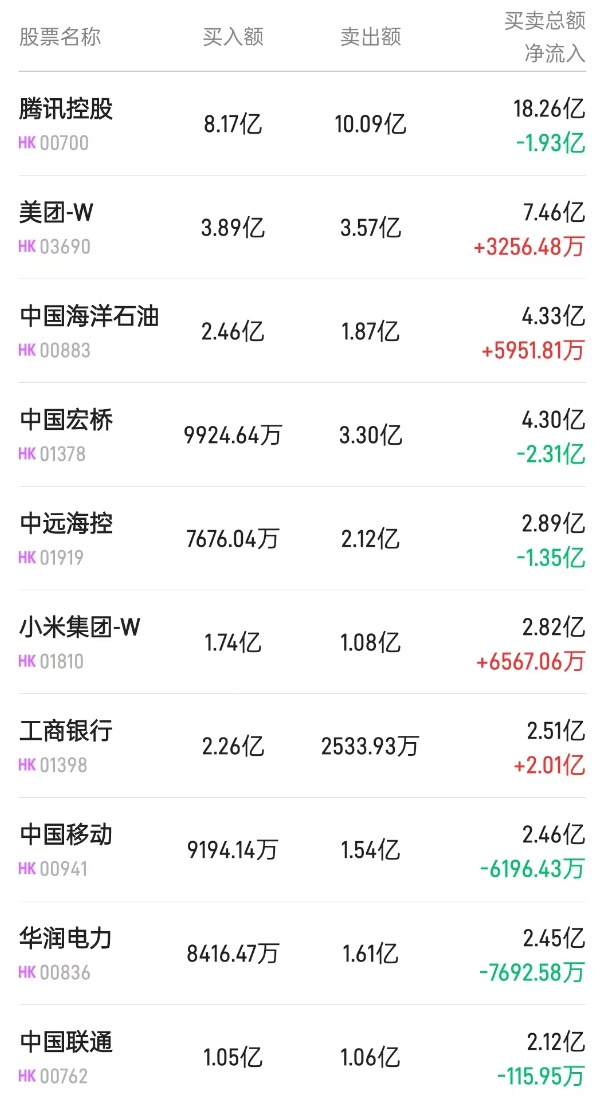 此外,小米集团-W(01810)获净买入2.07亿港元。而中国移动(00941)、中芯国际(00981)、中国联通(00762)分别遭净卖出1.86亿、1.03亿、115万港元。