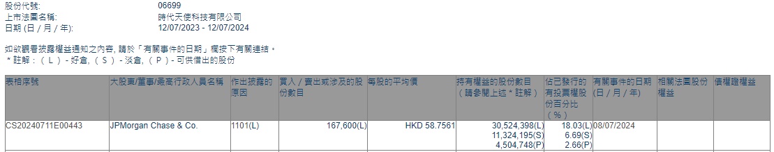 智通财经APP获悉,香港联交所最新资料显示,7月8日,小摩增持时代天使(06699)16.76万股,每股作价58.7561港元,总金额约为984.75万港元。增持后最新持股数目约为3052.44万股,最新持股比例为18.03%。