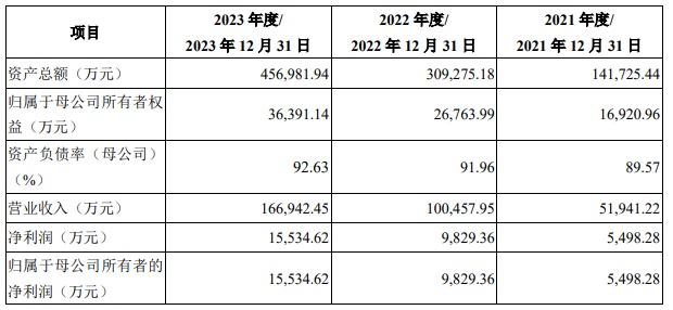 财务方面,于2021年、2022年、2023年,泰金新能实现营业收入分别约为5.19亿元、10.05亿元、16.69亿元。同期,该公司实现净利润分别约为5498.28万元、9829.36万元、1.55亿元。