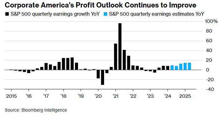 Bloomberg Intelligence汇编的数据显示,分析师估计,标普500指数成分股公司第二季度利润将较上年同期增长9.3%,这将是自2021年最后三个月以来的最大增幅。