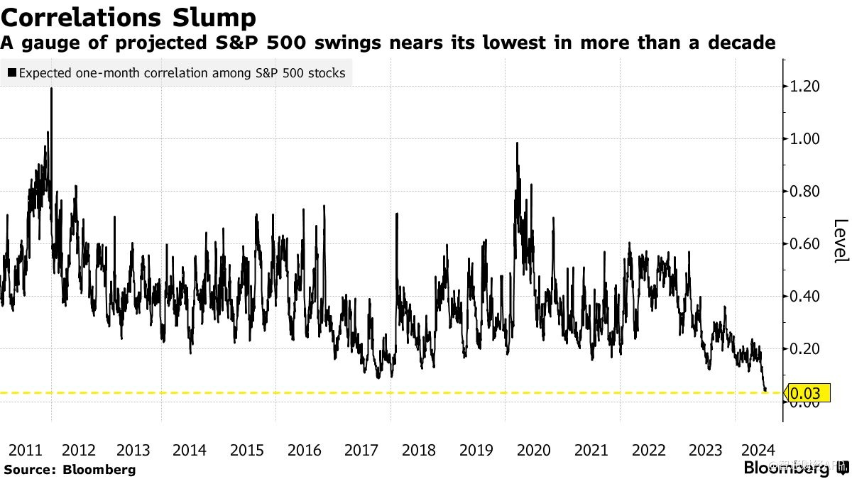 标普500指数成分股相关性下降