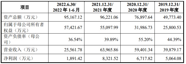 财务方面,2019年、2020年、2021年、2022年1-6月,国地科技分别实现营收约为3.99亿、5.94亿、6.40亿、2.56亿元人民币,同期净利润分别为5064.08万、6717.82万、8321.52万、1891.42万元人民币。