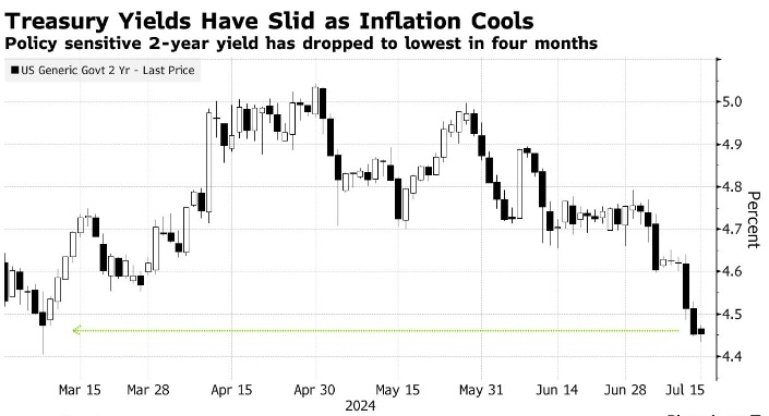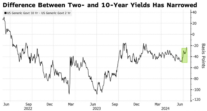 尽管2年期美国国债收益率仍高于10年期美国国债收益率,但两者之间的利差已从6月底的51个基点收窄至23个基点。