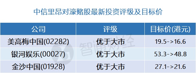 智通财经APP获悉,中信里昂发布研究报告称,将博彩业2024及25财年的EBITDA预测分别下调8%及6%,并下调博彩股目标价;首选美高梅中国(02282)及银河娱乐(00027)。该行料次季澳门博彩业EBITDA将按季跌4.7%,博彩总收入(GGR)按季跌1.6%。