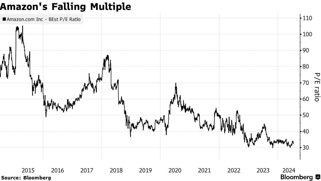 FBB的Brenner表示:“这种增长可以支撑市盈率,我认为随着亚马逊保持强劲的盈利增长,市盈率将继续下降。说零售业务是盈利有点夸张,但即使没有AWS,亚马逊显然也是一家了不起的公司。”