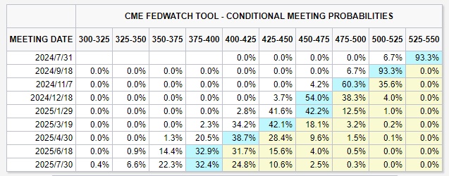 数据公布后,美元走强,美国国债收益率收复盘中跌幅。CME的Fed watch工具显示,美联储9月降息的可能性为100%。交易员认为降息25个基点的概率为93.3%,降息50个基点的概率为6.7%。