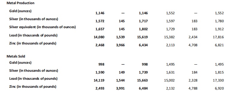 从量来看,期内公司实现白银产量约171.7万盎司、销量约为173.9万盎司;银当量(只有银和金)产量约为180.2万盎司;铅产量约为1561.9万磅、销量约为1566.3万磅;锌产量约为640万磅、销量约为648.4万磅;黄金产量约为1146盎司、销量为998盎司。