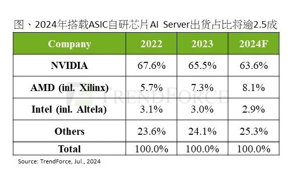 各厂商扩大自研ASIC,促进ASIC服务器占整体比重提升至26%