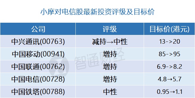 此外,该行将中兴H股评级由“减持”上调至“中性”,认为公司的政、企和消费者业务的表现可能胜预期,或抵销内地基站业务的疲弱,从而推动次季收入及盈利稳定增长。铁塔方面,该行料其次季业绩或保持稳健,管理层对2026年后的财务安排指引料很少,该行维持对其“中性”评级。