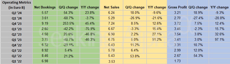 从整体趋势来看,阿斯麦在光刻系统销售上经历了一些波动,但总体上显示出市场需求的逐步回升,尤其是在新设备的销售上,尽管面临一些年度比较的挑战。旧设备的市场需求也显示出一定的增长,这可能与市场对成本效益更高的解决方案的需求增加有关。