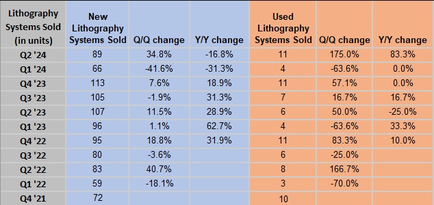 据了解,阿斯麦在2024年第二季度在新旧光刻系统的销售上表现出显著的增长。新光刻系统的销售量达到了89台,环比增长34.8%,尽管与去年同期相比有所下降,但这一增长显示出市场需求的强劲复苏。同时,旧光刻系统的销售量也从上一季度的4台激增至11台,环比增长175.0%,同比增长83.3%,显示出二手市场对这些设备的强烈需求。