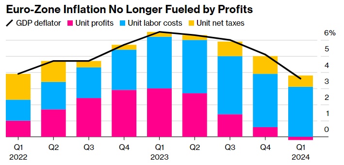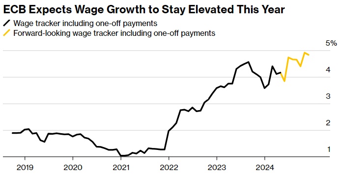 法国巴黎银行驻伦敦经济学家Paul Hollingsworth认为,人们“越来越关注生产率”,他认为工资增长与欧洲央行的预期基本一致,利润率也在压缩。他表示:"欧洲央行在很大程度上依赖生产率上升来缓解部分单位劳动力成本压力。如果这种情况没有发生——如果这不仅仅是生产率的周期性下降,而是某种更具有结构性的东西——那也将对通胀产生重要影响。”