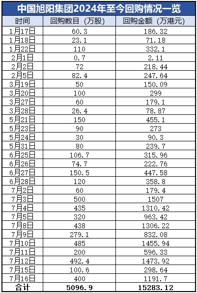 尤其是7月以来,旭阳集团明显提高了回购股票的频率,同时还加大了回购力度。数据显示,截至7月16日收盘,本月11个交易日里旭阳集团每天至少斥资百万港元回购股份,该月至今公司累计回购股份数量已达到了3710.1万股,回购金额超过1.11亿港元。