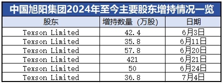 就在旭阳集团开足马力回购股份的同时,公司的重要股东们也正以坚定态度密集增持公司股份。据统计,今年来旭阳集团控股股东Texson Limited(由杨雪岗先生全资拥有)共增持了643.8万股。