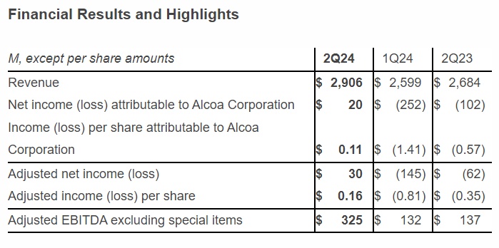 不包括特殊项目的调整后EBITDA飙升至3.25亿美元,较第一季度的1.32亿美元和去年同期的1.37亿美元大幅增长。这一改善归因于氧化铝和铝的平均实现价格上涨,加上生产和原材料成本下降,部分被能源成本上升所抵消。