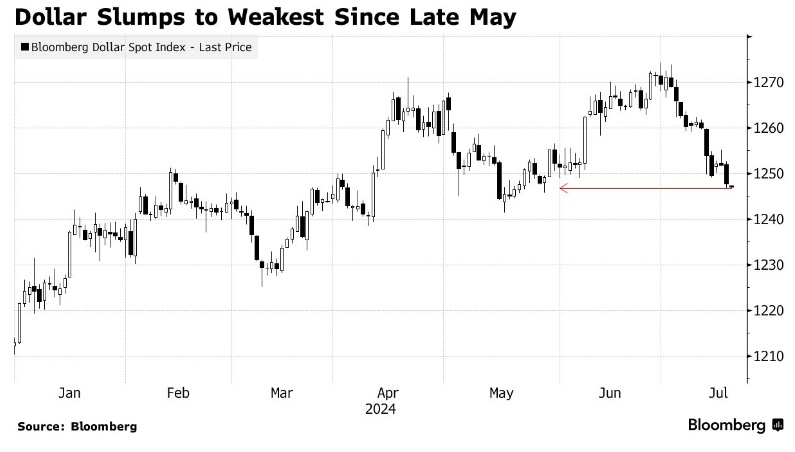 美元跌至5月底以来的最低点