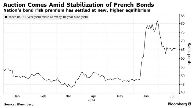 尽管投资者仍意识到法国的财政挑战,但他们现在获得的溢价更高。法国和德国 10 年期债券收益率之间的利差徘徊在 66 个基点左右,比 6 月底的高点低约 20 个基点,但仍高于五年平均水平。