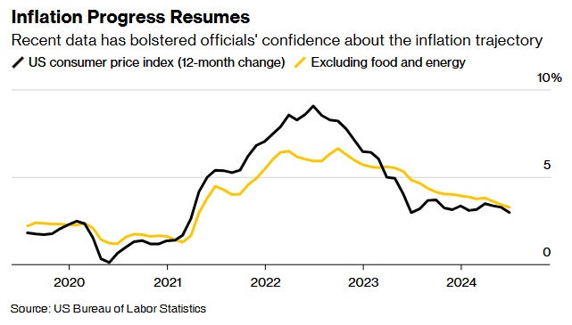 美联储官员们用“令人鼓舞”、“非常好”等词语来描述最近的一系列通胀数据,这强化了美联储的信念,即通胀正处于正确的轨道上。鲍威尔在本周早些时候表示,上一季度的数据“确实在一定程度上提振了信心”。