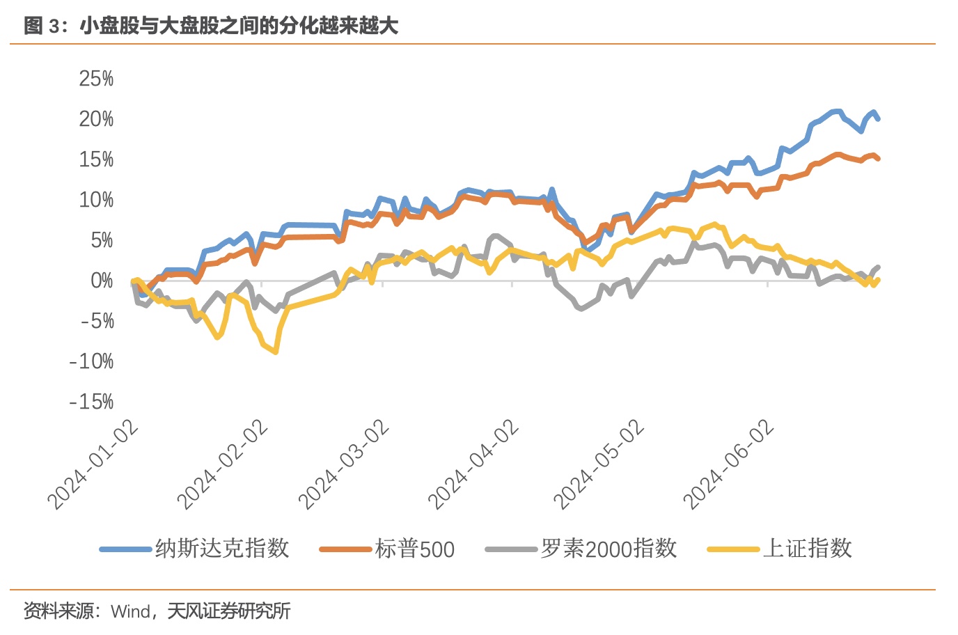 标普和纳斯达克不断创新高,主要是头部科技公司的贡献。小盘股比如罗素2000,今年上半年的收益率只有1.7%,和上证指数上半年的收益率0.2%相差无几,如果择时失误一样面临亏损。