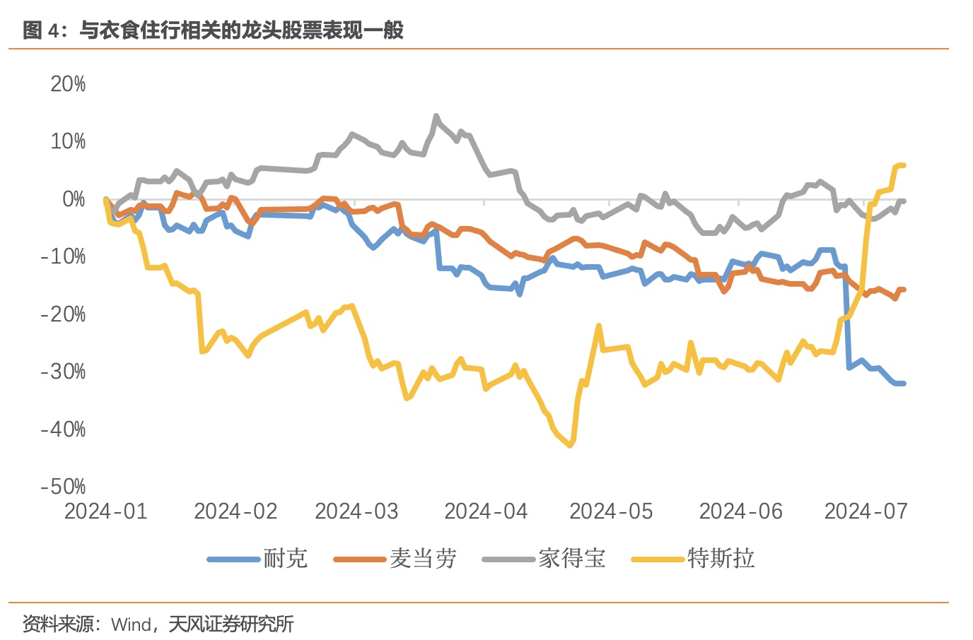 “穿”的耐克,最近财报出来后股价暴跌,服装消费受到了库存去化和补贴退步的压力。