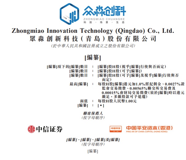智通财经APP获悉,据港交所7月22日消息,众淼创新科技(青岛)股份有限公司(众淼创科) 通过港交所主板上市聆讯,中信证券及中国平安资本(香港)为联席保荐人。