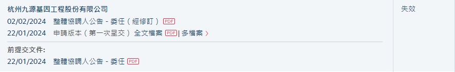 智通财经APP获悉,杭州九源基因工程股份有限公司于1月22日递交的港股招股书满6个月,于7月22日失效,递表时,华泰国际为其独家保荐人。