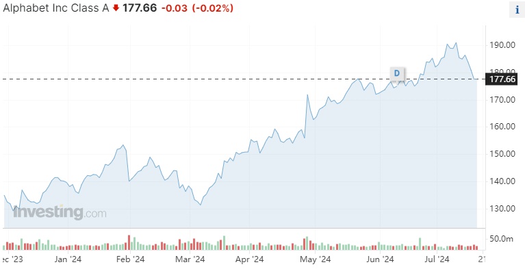 自今年年初以来,Alphabet的股价上涨了近30%,截至周五收盘,Alphabet的股价为177.66美元。