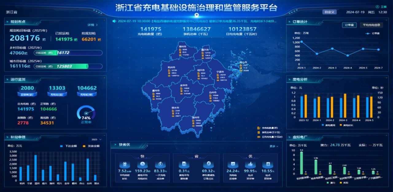 着眼全国,浙江省新能源汽车保有量、新车销售渗透率、公共充电基础设施数量、充电量均处于国内领先位置,其监管治理服务平台的建设和应用,在全国具有重要的示范效应。从功能上看,平台涵盖了治理端、企业端、服务端,既有规划、建设、运行、评价、奖补等模块,便于全流程精准监管,又是面向企业的统一服务门户,提供建站备案、投运报备、数据接入、奖补申报等办事流程。