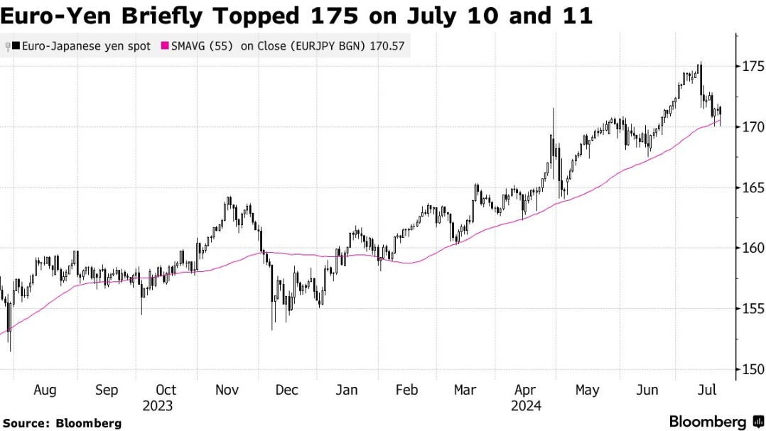 智通财经APP获悉,花旗集团分析师预测,如果欧元兑日元汇率接近180关口,日本当局可能会采取行动,通过抛售欧元来干预市场。这一预测基于7月11日欧元兑日元汇率一度触及175.43的历史高点,随后虽有所回落,但东京时段的汇率仍维持在171左右。日本央行在7月11日可能已经投入约3.5万亿日元(约220亿美元)来支撑日元兑美元的汇率,这标志着今年内第三次干预,而随后对欧元兑日元和美元兑日元的汇率检查,进一步表明了日本央行干预外汇市场的决心。