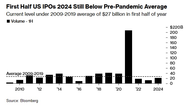 2024年上半年美国IPO规模仍低于疫情前平均水平