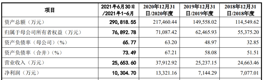 财务方面,2018年、2019年、2020年及2021年1-6月,海诺尔分别实现营收约为2.47亿、2.52亿、3.79亿、2.57亿元人民币,同期净利润分别约为7077.01万、7144.29万、1.33亿、1.03亿元人民币。