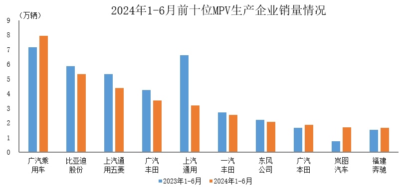 智通财经APP获悉,据中国汽车工业协会统计分析,2024年1-6月,销量排名前十位的MPV生产企业共销售34.2万辆,占MPV销售总量的75.1%。