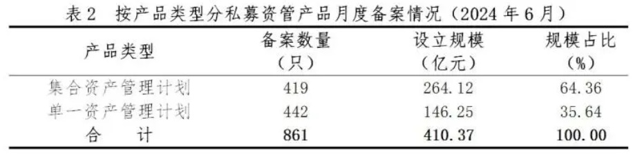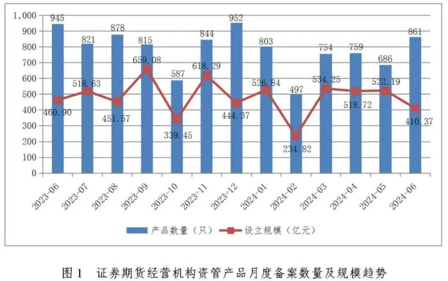 智通财经APP获悉,7月24日,中基协发文称,2024年6月,证券期货经营机构共备案私募资管产品861只,环比增长25.51%,同比减少8.89%;设立规模410.37亿元,环比减少21.41%,同比减少10.96%。